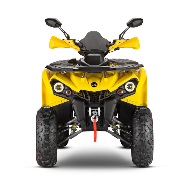 Комфорт и управляемость: Адаптивная подвеска с ходом 160 мм обеспечивает плавность хода даже на сложных трассах, включая узкие лесные тропы и каменистые участки. Вес квадроцикла всего 197 кг, что существенно упрощает управление и прохождение труднопроходимых участков.