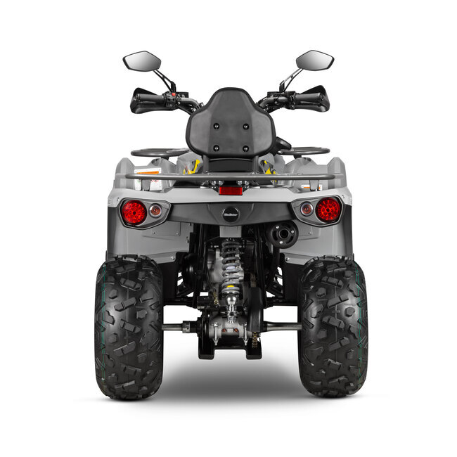 Комфорт и управляемость: Адаптивная подвеска с ходом 160 мм обеспечивает плавность хода даже на сложных трассах, включая узкие лесные тропы и каменистые участки. Вес квадроцикла всего 197 кг, что существенно упрощает управление и прохождение труднопроходимых участков.